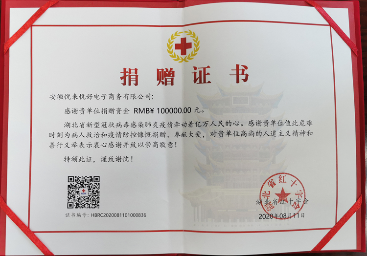 新年伊始,湖北武汉新型冠状病毒肺炎疫情牵动着全中国14亿人的心,悦来悦好也一直密切关注疫情发展。1月26日,在与当地相关机构全面沟通后,安徽悦来悦好电子商务有限公司作为国内电商服务外包行业首家爱心捐款企业,向湖北省红十字会捐款10万元,专项用于武汉前线抗击及防治肺炎疫情工作。