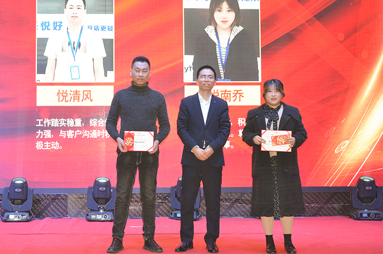 悦来悦好总经理吴强顺、副总经理钱行、悦来悦好客服部“服务之星”代表悦惜颜分别上台发表了致辞,他们发表了对2020年悦来悦好的展望,以及对客户,对员工的深深祝福,希望2020与客户,与所有员工携手并进,再创佳绩!