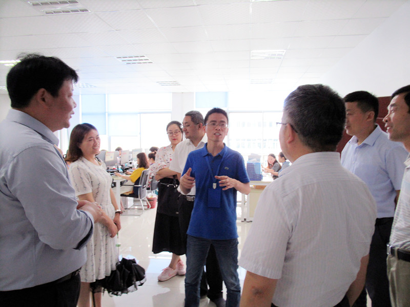 在安徽悦来悦好电子商务有限公司,夏朝晖一行边走边看,安徽悦来悦好总经理吴强顺一路陪同参观客服大厅、培训部、质检部与市场部等部门。夏朝晖就安徽悦来悦好企业经营项目、管理方式、运营状况、员工招聘及就职情况等信息进行深入询问,吴强顺总经理对夏朝晖一行人的提问进行详细地一一作答。