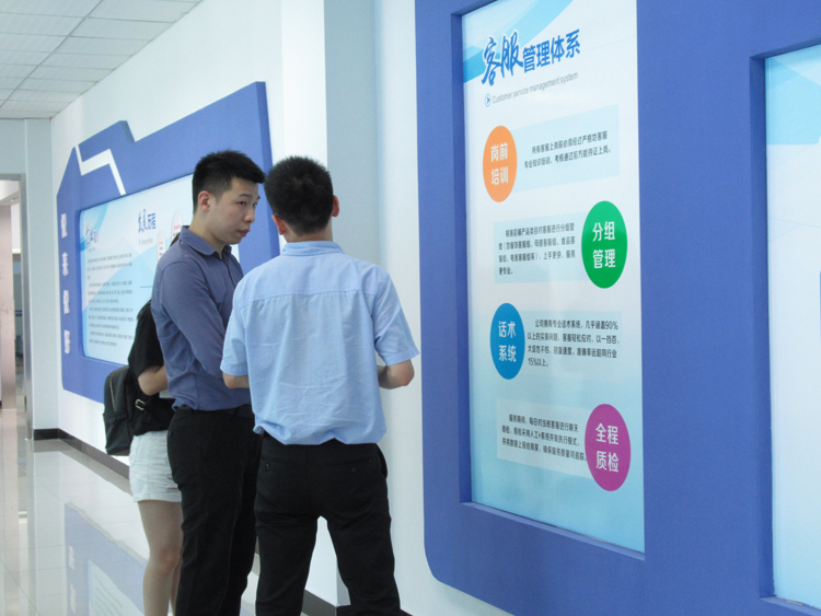 吴强顺陪同栏目组参观了公司的前台企业文化展示区、市场部、质检部和客服部等重要办公场所,并就公司的发展历程及企业文化进行介绍。参观过程中,面对栏目组就客服管理体系、公司运营模式、行业现状等方面提出的疑问,吴强顺也一一予以阐述。在详细了解之后,栏目组也对行业的前景表示看好,对安徽悦来悦好当前的发展模式予以认同。