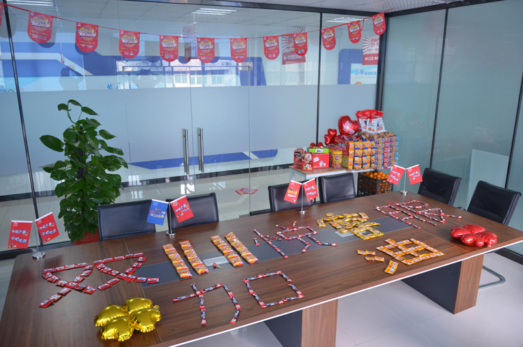 为激发全体悦客服的斗志,公司从11月9日开始进行连续三天的现金红包大抽奖,并且在双十一前夕,所有悦客服依次在出征榜上签下姓名,时刻待发。为确保双十一当天,作为主力的悦客服们精力充沛,公司将准备好的,大家童年记忆中的美食也拿了出来,以备不时之需。