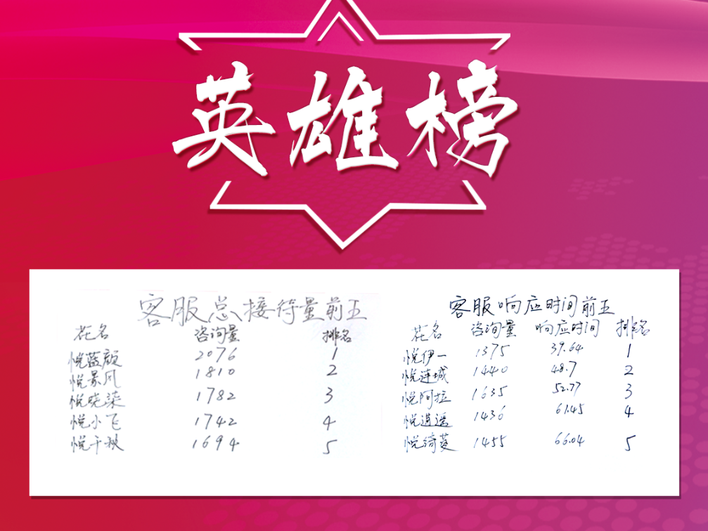 这是令人震惊的工作量,但细想一下,只要一直在回,总有回完的时候吧?优秀客服的能力恰体现于此,在如此大的工作强度下,回复速度最快的客服仍保持平均不到40秒的回复速度,面对这样优秀的客服,公司自然不会吝啬奖励,10位登上英雄榜的优秀客服每人一个现金红包。