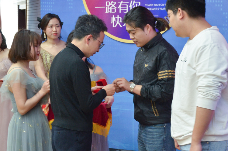 “能干会玩”是一种生命的平衡,可以提高我们的生命质量,可以帮助我们迈向更健康的人生;会玩的人思想和生活上更加丰富,自然更具有分析能力、想象力和创造力,会让生活更有激情和活力,心理健康综合指数同样也会更高。悦来悦好真心希望每一位家人都能做一个能干会玩的人!接下来就到了本次仪式最关键的时刻:为了感谢家人们为公司发展作出的巨大贡献,公司将对入司一周年、三周年的员工送上一枚专属定制的戒指。