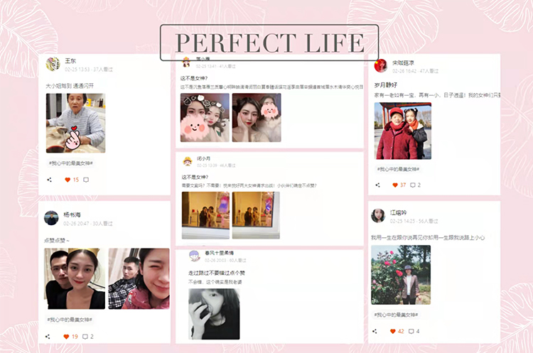 此外,2月25日-3月3日期间,公司还在企业内部论坛—我悦社区开展了“晒出你心目中的最美女神”活动。大家通过发布“女神”照片的方式纷纷晒出自己的母亲、爱人、孩子、女同事的照片,展示了女性独特风采的同时也表达了自己对她们的爱。此次活动既活跃了公司氛围,也增进了大家的感情。