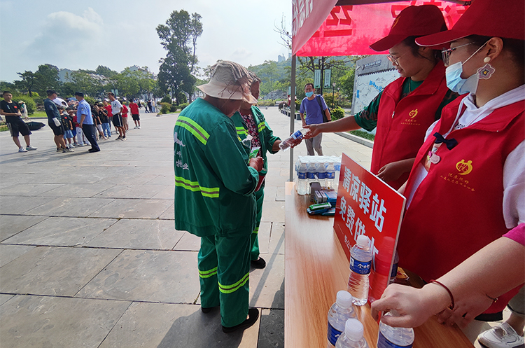 7月31日,悦来悦好公益与志愿服务协会的7名志愿者来到滁州琅琊山风景区游客中心入口,开展“炎炎夏日送清凉,丝丝凉意润心田”的志愿活动,旨在为上山的游客们和琅琊山工作人员送去一份清凉和关爱。