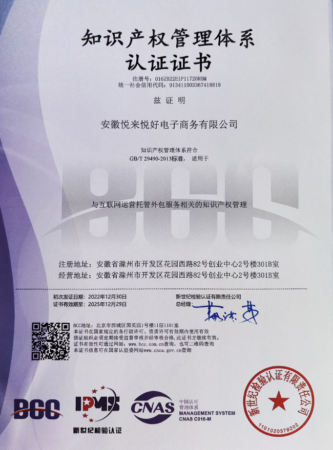 知识产权管理体系认证证书