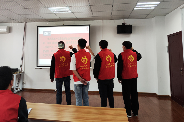 随后,在优秀会员代表的带领下,新加入协会的成员们全体起立,右手握拳,进行庄严的入会宣誓,并向新成员们戴上徽章。通过新会员宣誓仪式,既增加了新会员对悦公益协会会员的身份认同感,也更加坚定了新会员的责任感和使命感。