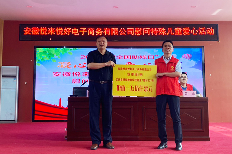 为弘扬中华民族扶弱助残的传统美德,用实际行动关爱和帮助残障儿童。在第33次“全国助残日”即将来临之际,5月18日下午,悦来悦好公益与志愿服务协会会长吴强顺,副会长孙道燕和5名协会会员代表一行人来到定远县特殊教育学校开展“阳光助残,爱心同行”慰问残障儿童爱心活动,并代表悦来悦好公司向学校进行了衣物捐赠。