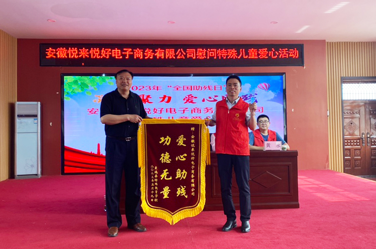 捐赠仪式上,定远县特教学校谢校长对我司关心特教事业表示衷心感谢,并对学校发展及规划建设情况作了介绍。他表示未来将继续做好特殊学生教育康复工作,为孩子的成长创造良好的环境,让他们能够健康快乐成长。同时,为爱心企业送上锦旗,以表感谢之情。
