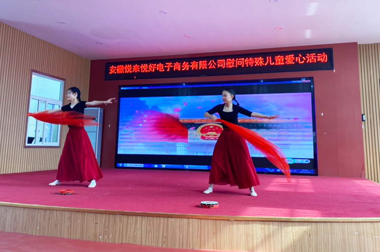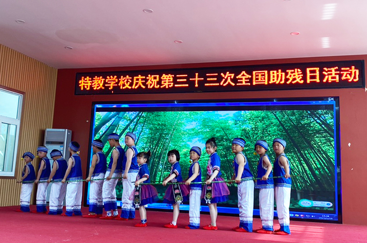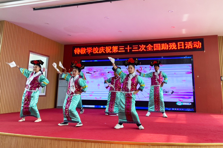 慰问活动中,特教学校的学生们还表演了《竹竿舞》《有一个姑娘》等舞蹈节目,虽然他们身体存在缺陷、不善于表达情感,但阳光自信的表演、欢快的舞蹈引得现场掌声四起,充分展示出学生们积极乐观的精神状态。