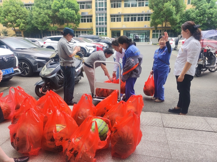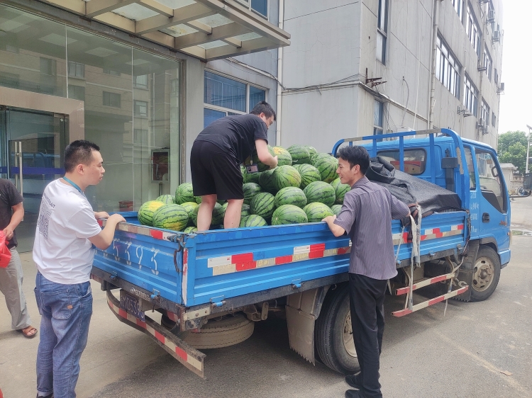 为关爱员工身体健康,7月28日,安徽悦来悦好科技股份有限公司以 “爱心助农”方式采购了一批西瓜,为员工发放夏日福利,向员工送去关爱,送上清凉。