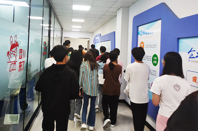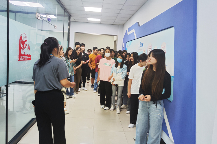 宋主管首先向学院的学生介绍了公司的业务范围、发展历程、核心竞争优势及未来发展。随后,宋主管带领学院学生参观了我司合作品牌展示区、企业文化走廊、员工办公区等处。