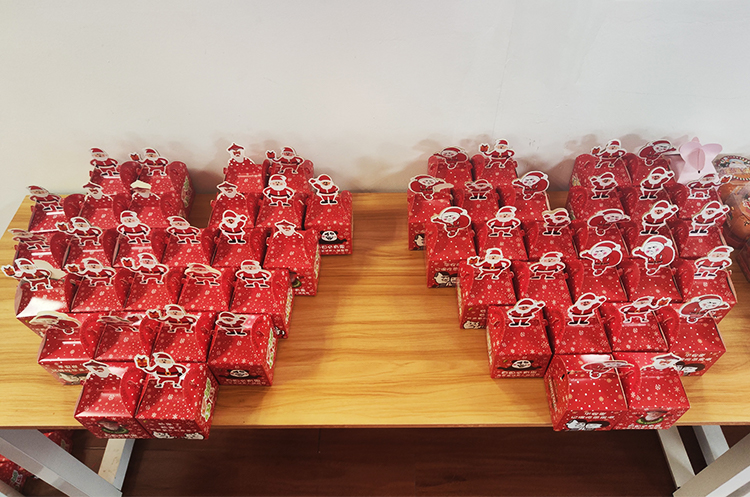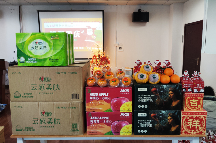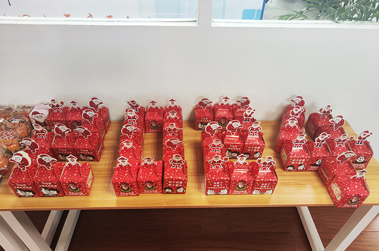 在平安夜来临之际,人资部的小伙伴们早早就开始为大家准备了平安礼盒,礼盒内不仅有苹果,还随机放了橙子和柿子,寓意在新的一年里心想事“橙”、“柿柿”如意。