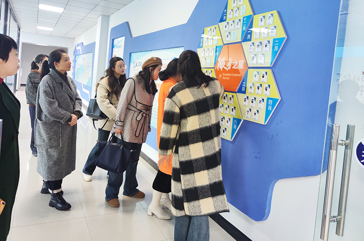 宋主管带领考察团一行实地参观了我司合作品牌展示区、企业文化走廊、员工办公区等处。在参观过程中,宋主管详细介绍了悦来悦好的发展历程、业务模式以及未来发展规划等情况,并就考察团成员们关心的问题一一做出解答。