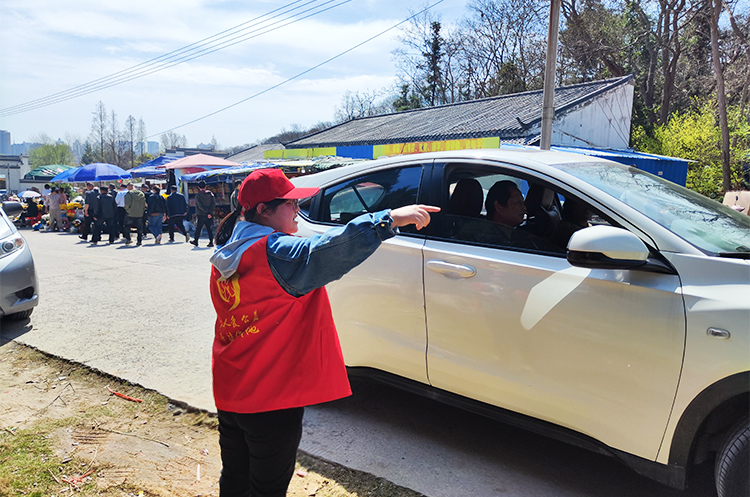 在了解了相关信息后,志愿者们迅速投入到工作中,她们站在路口指挥交通,提醒司机注意行车安全,减速慢行。在志愿者们的引导下,公墓内的交通秩序井然有序,车辆和行人各行其道,没有出现拥堵和混乱的情况。