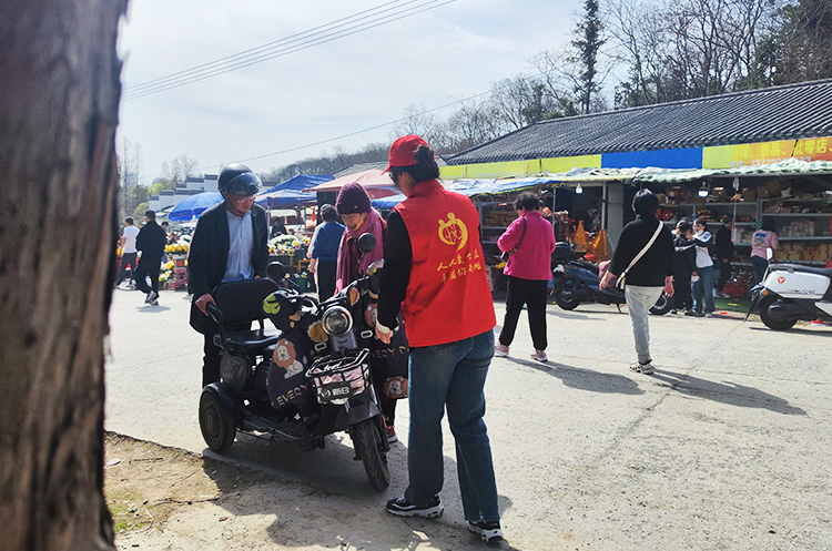 除了维护交通秩序外,志愿者们还主动为行动不便的老人提供帮助,搀扶他们过马路,耐心细致地为他们解答问题,让每一位祭祀群众都能感受到社会的温暖和关爱。