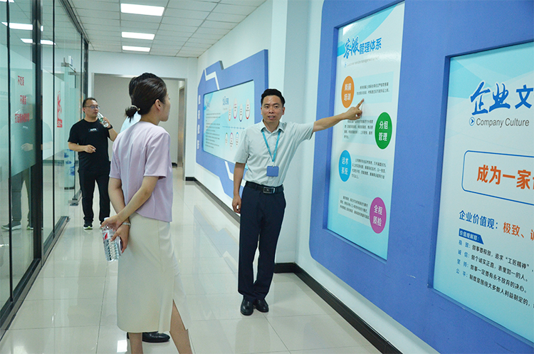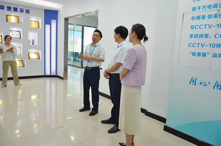 接着,考察团一行来到了企业文化走廊。董事长向考察团详细介绍了悦来悦好的发展历程和公司客服管理体系。他强调,悦来悦好对客户服务是很重视的,公司建立了完善的客服管理体系,从岗前培训、分组管理、话术系统到全程质检,每一个环节都力求做到最好。考察团一行认真聆听着吴董的讲解,对我司的发展历程和公司客服管理体系表示高度赞赏,认为悦来悦好是一家有远见、有担当的企业。