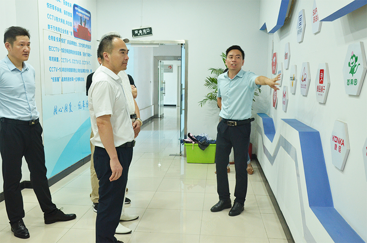 在吴董的陪同下,领导们首先步入了我司的合作品牌展示区。墙面上,汇聚了我司与众多知名品牌的合作,吴董逐一介绍这些合作伙伴,从品牌理念到市场定位,再到双方合作的成果,领导们对悦来悦好在品牌建设上的远见卓识表示高度认可。