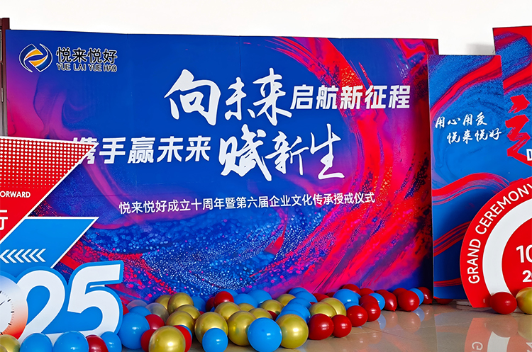 随着庆典圆满落幕,悦来悦好正式开启下一个十年篇章。在这个充满挑战与机遇的新时代,全体员工将以此次活动为新起点,继续秉持“让网上开店更轻松”的使命,践行“真诚、善良、喜欢、公平、自由、快乐、博爱、共享企业成功”的核心价值观,向着“成为一家让客户满意、员工有爱的企业”的愿景不断迈进。我们将以“向未来,赋新生”的信念,在变革浪潮中拥抱机遇,向着更高的目标奋勇迈进,在电商服务领域续写更加精彩的篇章。