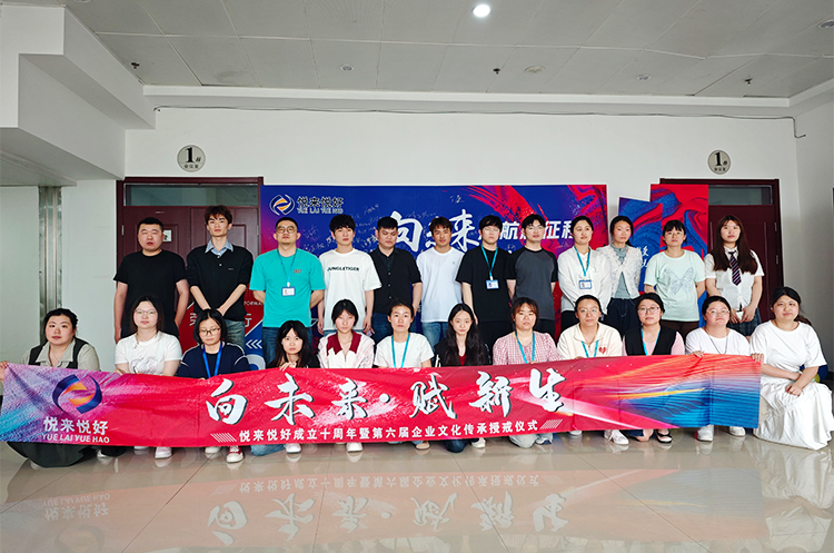 2025年4月21日,滁州科创中心3号楼4F会议厅内气氛热烈,以“向未来,赋新生”为主题的悦来悦好成立十周年暨第六届企业文化传承授戒仪式在此隆重举行。公司董事长悦空、总经理悦喆、副总经理悦灵均及所有悦来悦好的家人们齐聚一堂,共同见证了这个重要时刻。