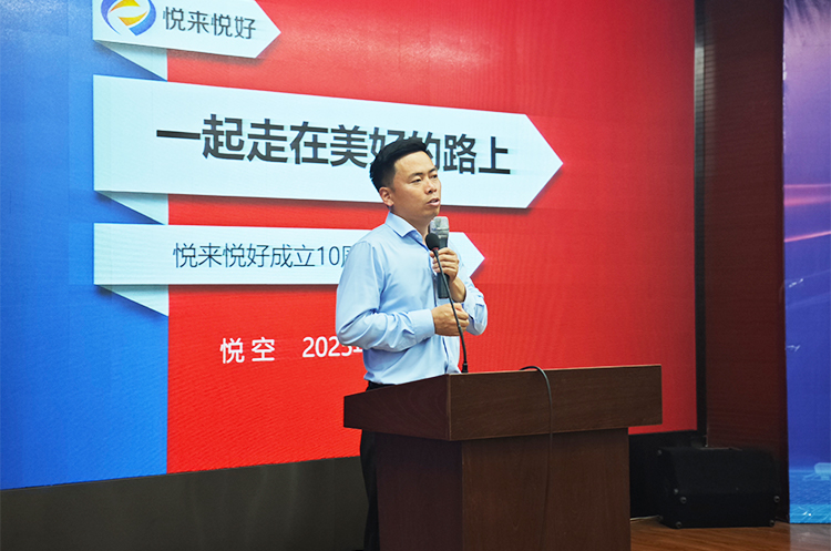 活动开场,悦来悦好董事长悦空登台发表致辞。他首先对到场的所有悦家人们表示诚挚的欢迎和衷心的感谢,并回顾了悦来悦好过去十年的发展历程。“从10人初创团队到1000+精英战队,从单一客服外包到电商服务生态——十年间,我们用指尖的温度点亮了12000+客户的信任灯塔,成长为行业内颇具影响力的电商服务外包提供商。” 悦空董事长特别强调,企业今日的辉煌,离不开每一位员工的坚守与付出,正是全体员工十年如一日的拼搏奉献,才让悦来悦好不断攀登新的高峰。