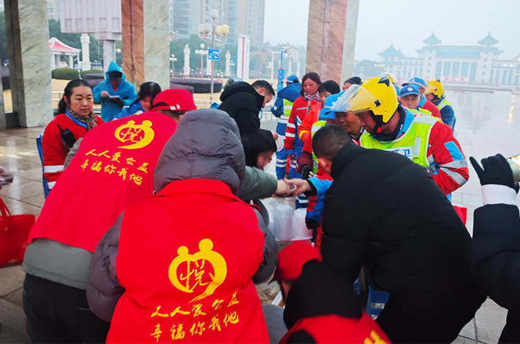 清晨6点50分,志愿者们提前抵达位于人民广场南门的慰问点,为环卫工人分发精心准备的腊八粥、包子、茶叶蛋等暖心早餐。现场温情洋溢,工人们纷纷表示感谢。