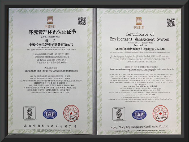 环境管理体系认证证书
