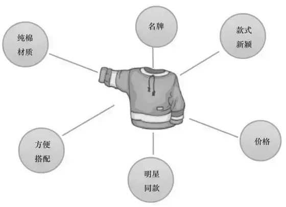 顾客在产生购买欲望的同时,也会对自己想要购买的商品有一定的期望要求:比如女性在选择衣服的时候,每个人的特殊需求是不一样的。如图所示,有的人希望购买的衣服是名牌,有的人希望是纯棉材质,有的人希望颜色和设计一定要与众不同。客服根据顾客的需求不同,对推荐商品的筛选也不一样。