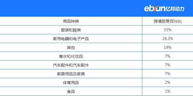 2018年的最佳跨境贸易类别排名,如下所示(AKIT提供):