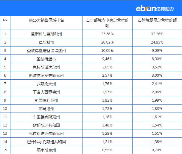 最大的城市是互联网技术和在线支付和购物用户的最大消费者。作为领先市场份额31.7%(MARC 2018)的PSP的Yandex支付 提供了以下按城市和地区划分的电子商务国内和跨境营业额2018年销售数字的地理分析: