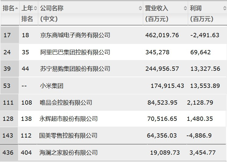 2019财富中国500强:京东、阿里等八大电商巨头上榜