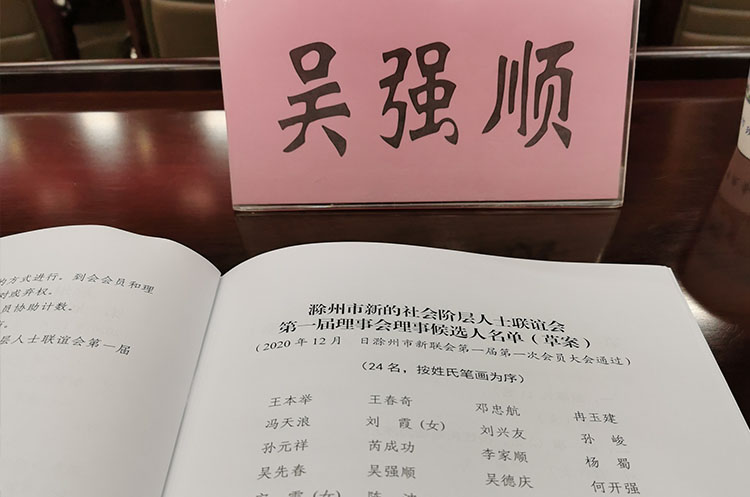 悦来悦好总经理吴强顺当选为滁州市新的社会阶层人士联谊会理事