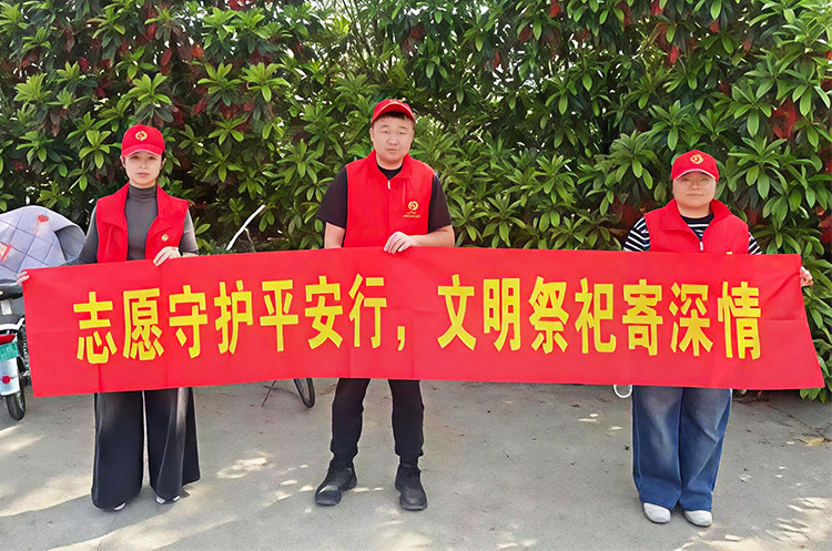 在公墓入口及周边重点路段,他们协助交警和管理处工作人员,耐心有序地引导车辆通行、规范停放;在人流集中区域,他们细心提醒大家注意安全,倡导文明、绿色、低碳的祭扫方式,用实际行动传递“文明祭祀”的新风尚。